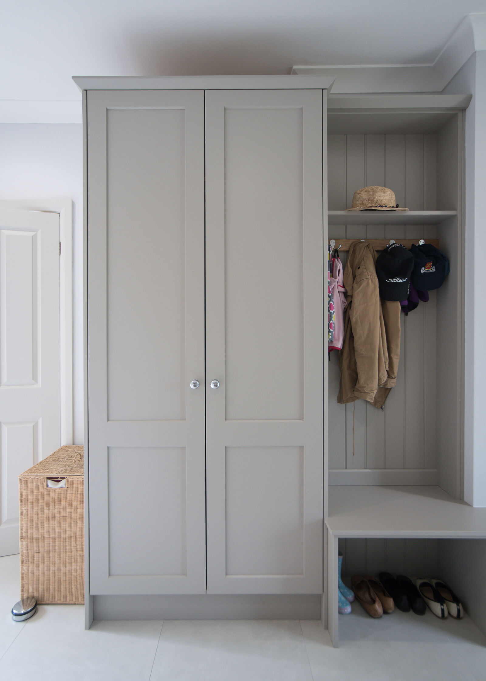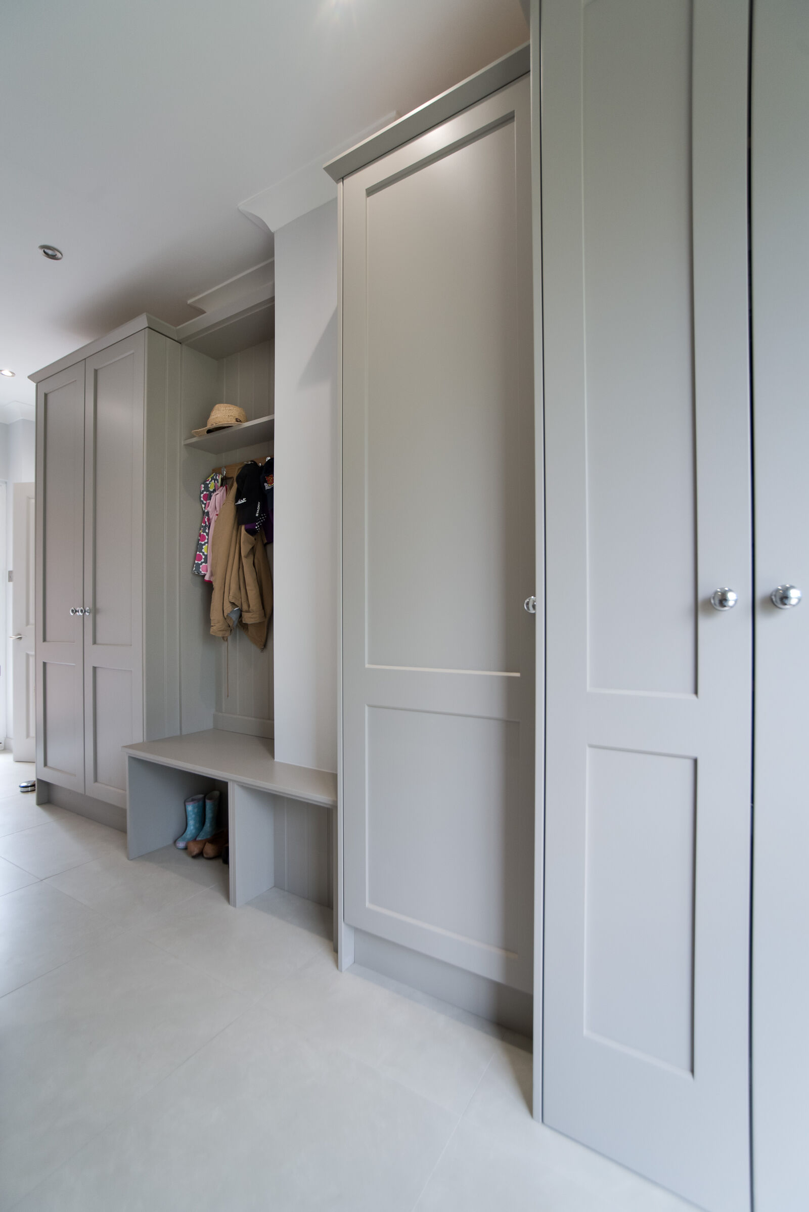 Bespoke cupboards and drawers can be designed to your specification depending on your job or pastimes. If fishing or golf is your thing, then a tall cupboard would be perfect but if you are thinking simply boots and hats and then maybe a series of drawers and cupboards would suit.