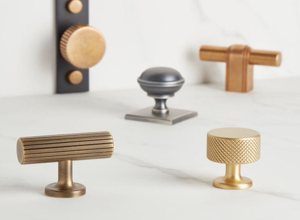 As a rule of thumb, we tend to use the same style/design combination even if you are mixing knobs, pulls or handles. A classic antique brass or pull style farmhouse knob would look good on a country kitchen but a streamlined contemporary kitchen would need a sleek bar handle or cup in satin brass or rose gold, for example.